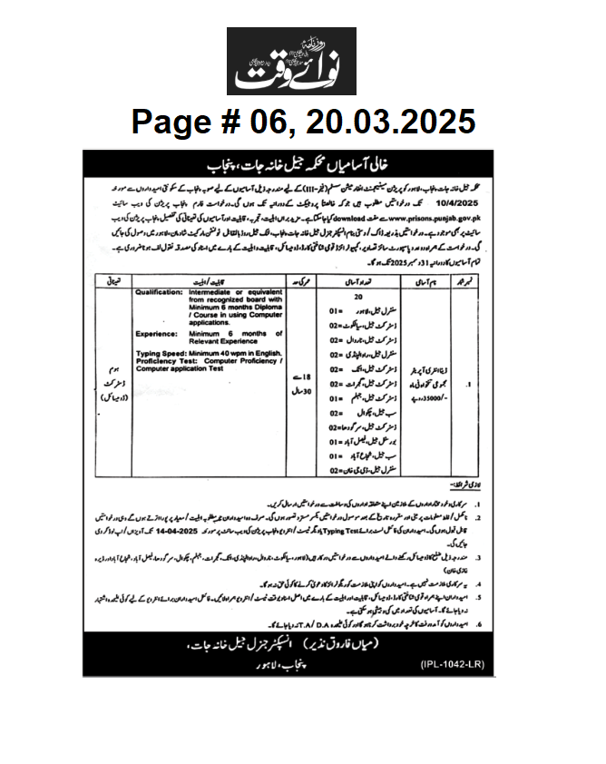 Punjab Prison Department Jobs 2025 Advertisement